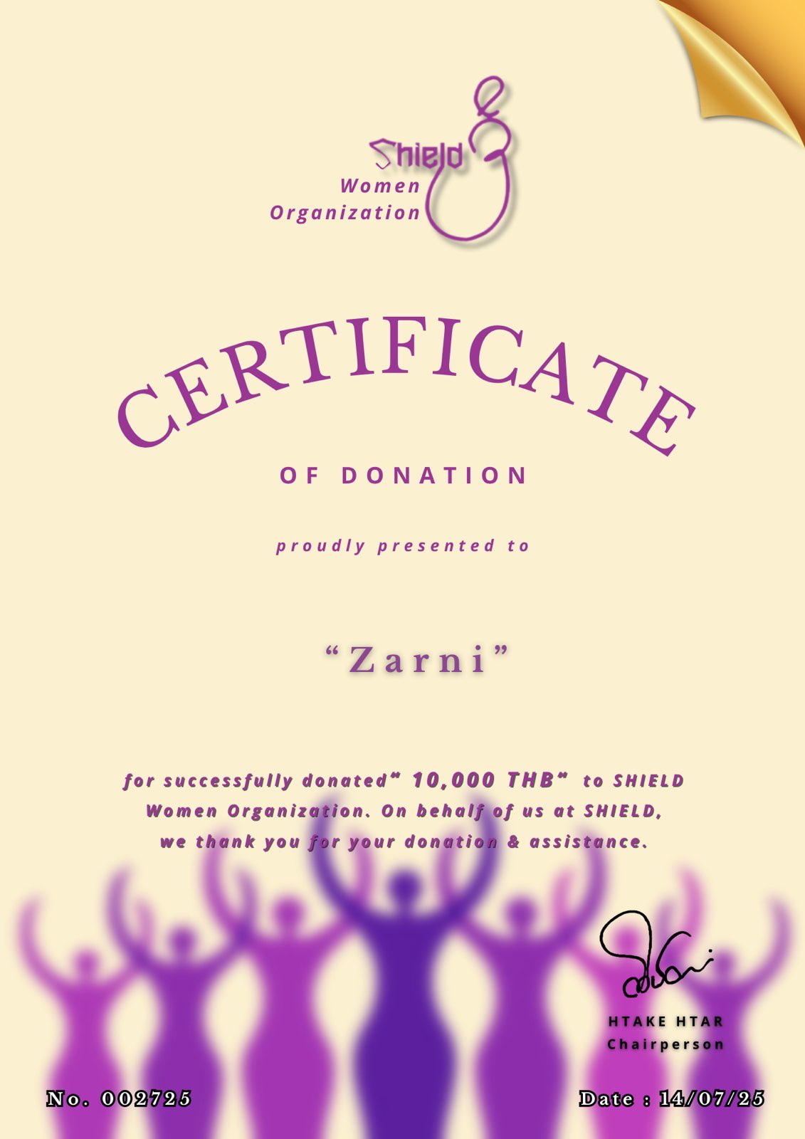 info@shieldwomen.orgကျေးဇူးတင်လျှက်(Finance Team )finance@shieldwomen.orgရှိ/ Shield အမျိုးသမီးအဖွဲ့______________________________