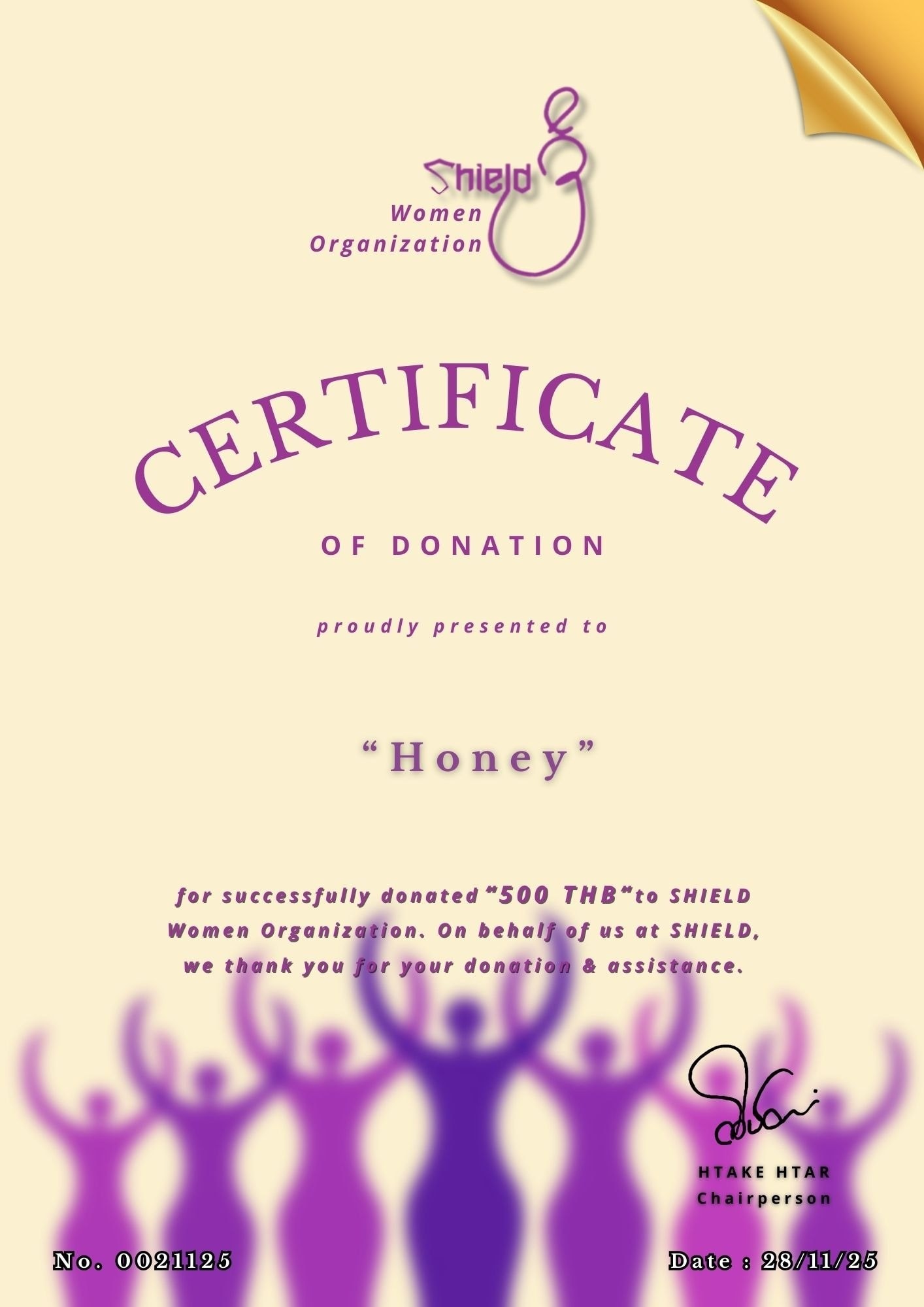 ရှိ/ Shield အမျိုးသမီးအဖွဲ့ ငွေစာရင်းရှင်းတမ်း ရက်စွဲ : ၂၆ ဇန်နဝါရီလ ၂၀၂၅။