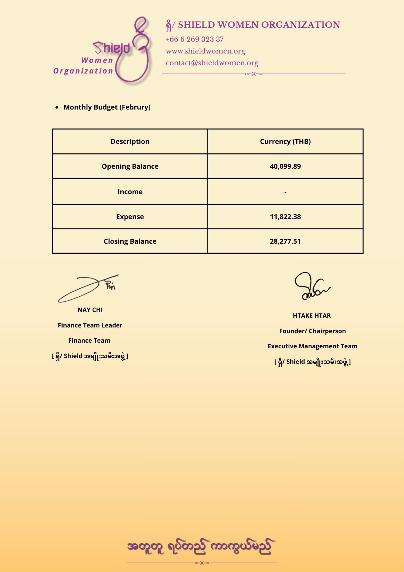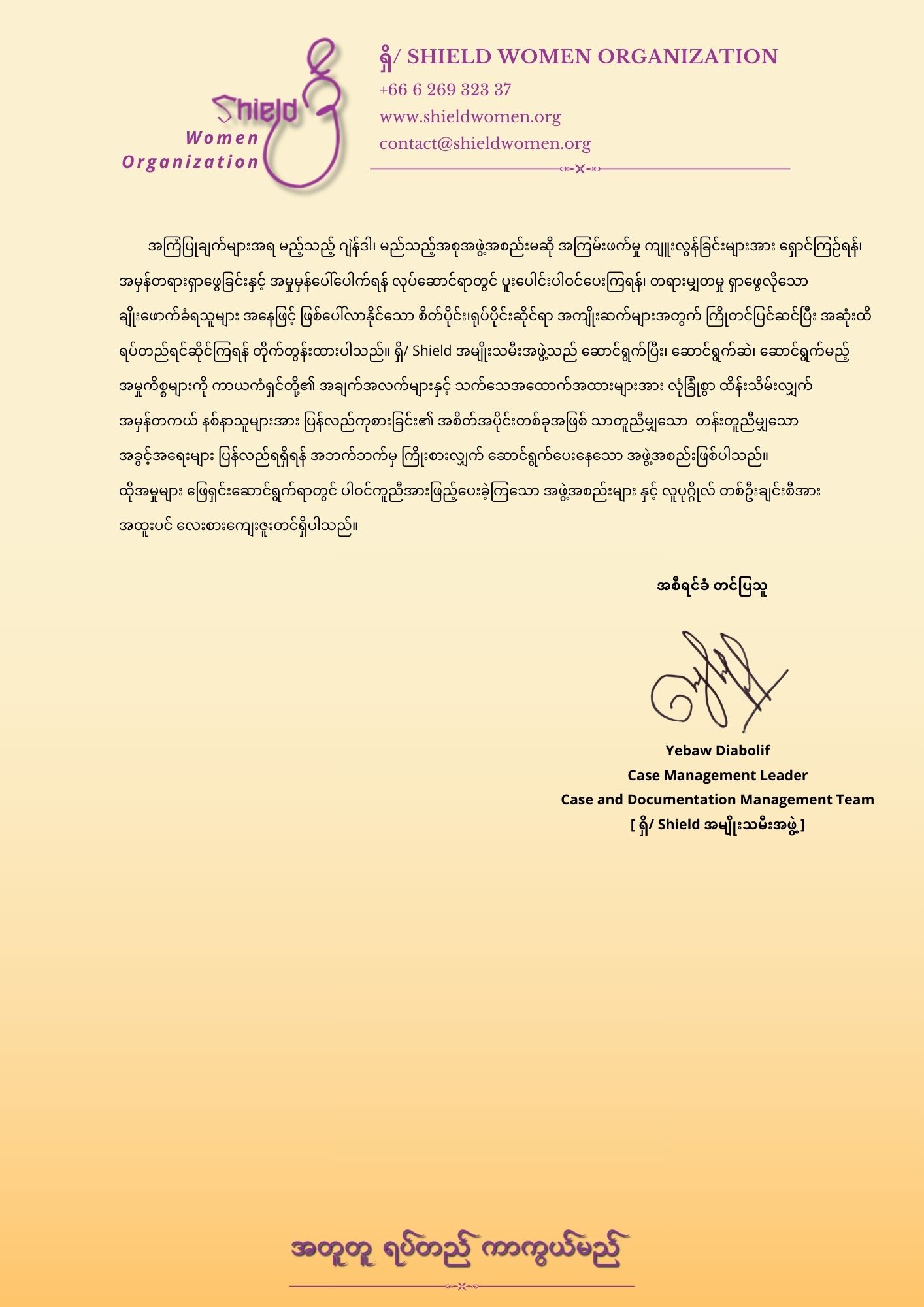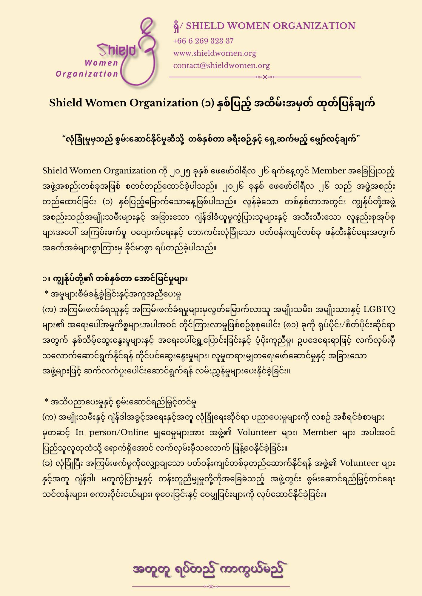 ဆက်သွယ်ရန်ကျွန်ုပ်တို့နှင့်အတူ အမျိုးသမီးထု ဖွံ့ဖြိုးတိုးတက်ရေးအတွက် လက်တွဲဆောင်ရွက်နိုင်ပါသည်။