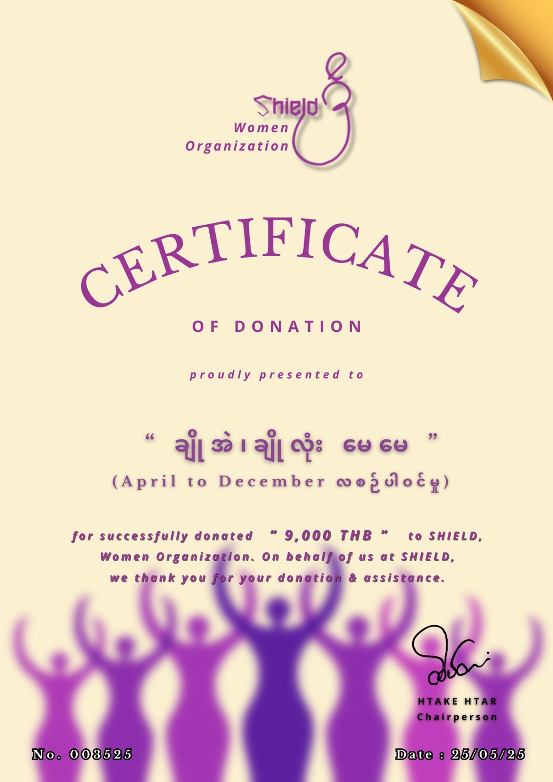 info@shieldwomen.orgကျေးဇူးတင်လျှက်(Finance Team )finance@shieldwomen.orgရှိ/ Shield အမျိုးသမီးအဖွဲ့________________________