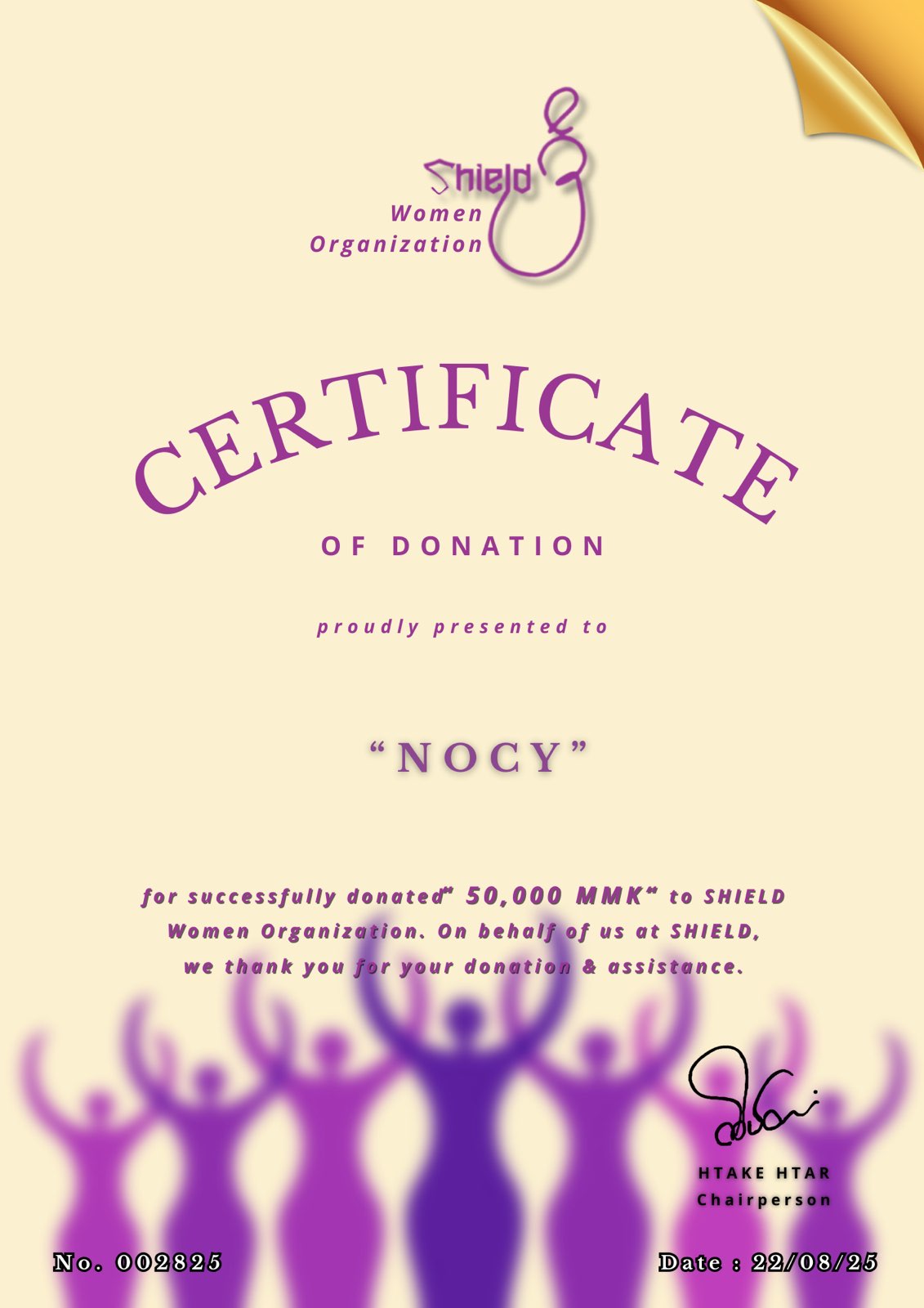 info@shieldwomen.orgကျေးဇူးတင်လျှက်(Finance Team )finance@shieldwomen.orgရှိ/ Shield အမျိုးသမီးအဖွဲ့