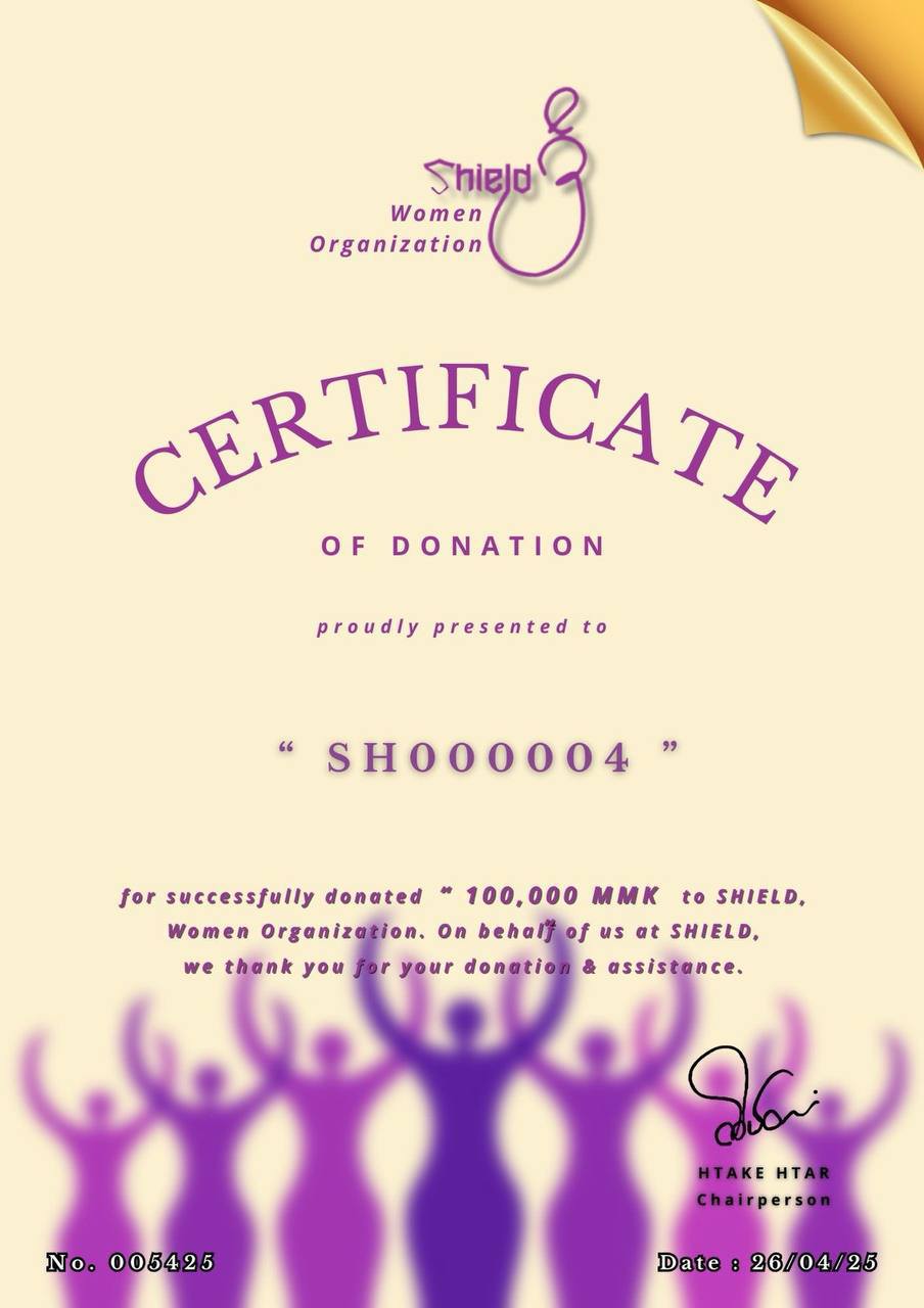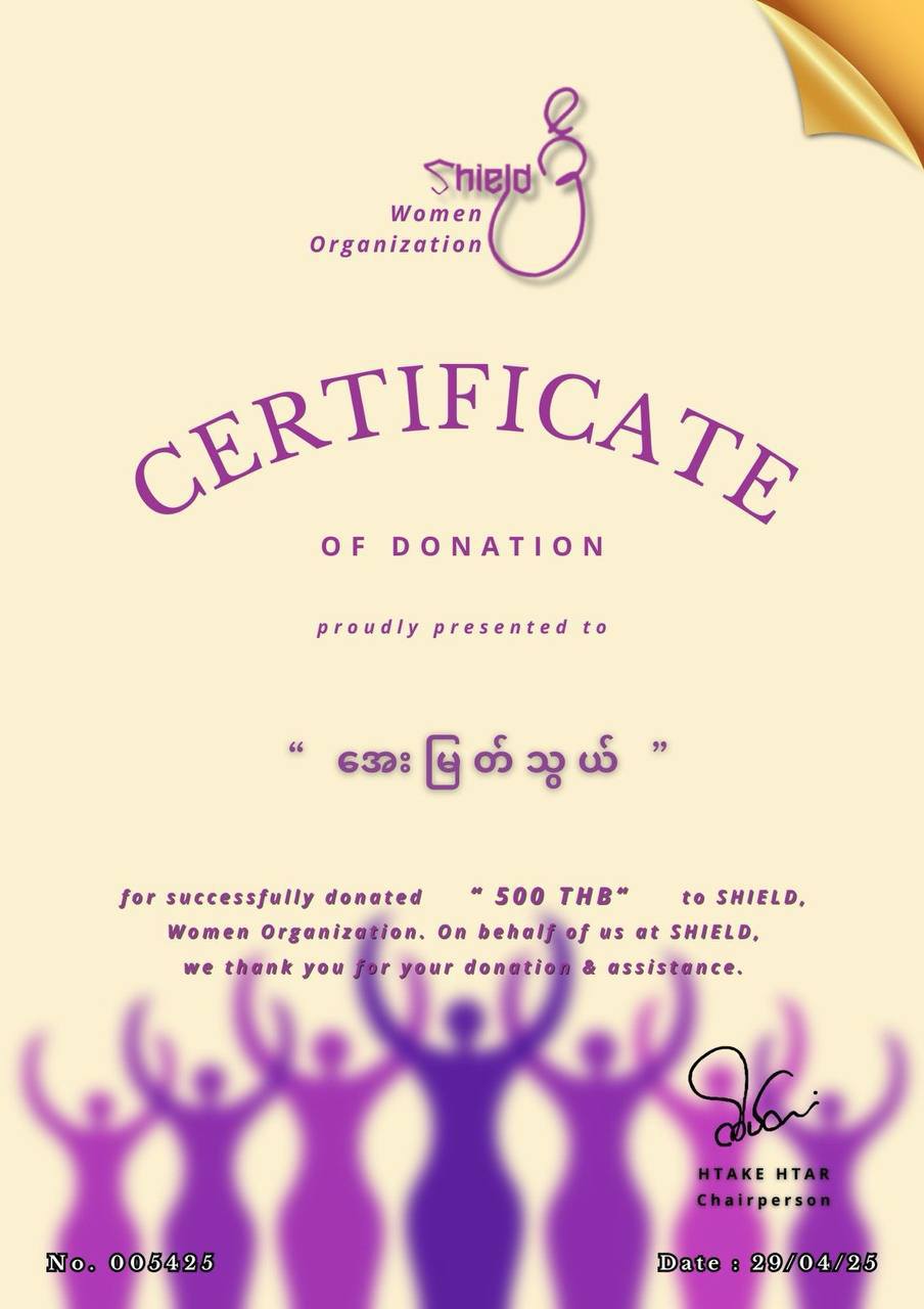 info@shieldwomen.orgကျေးဇူးတင်လျှက်(Finance Team )ရှိ/Shield အမျိုးသမီးအဖွဲ့